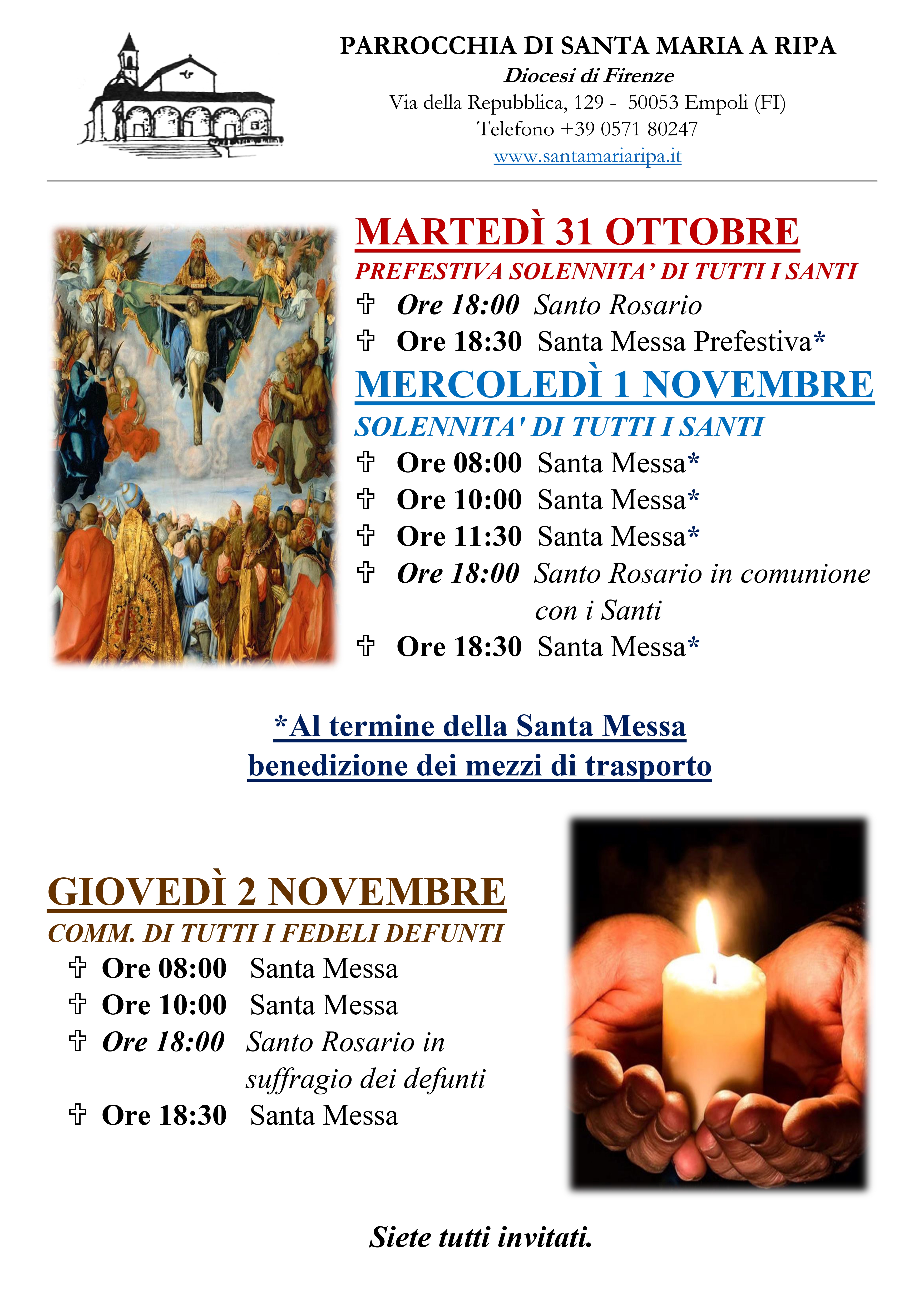 1 Novembre Tutti i Santi e 2 Novembre Commemorazione dei Defunti Pubblicato giorno 27 ottobre 2023 - Attività