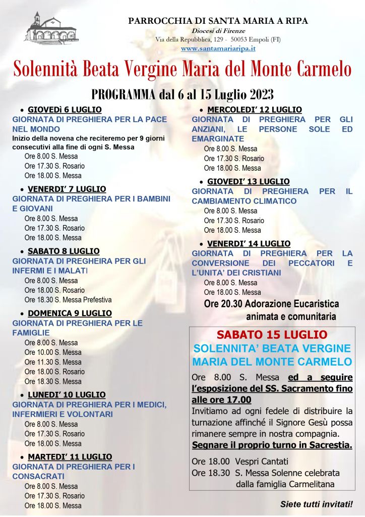 15 Luglio B.V. MARIA MONTE CARMELO Programma Completo