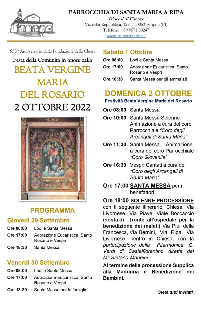 2 OTTOBRE 2022 Festa della BEATA VERGINE MARIA DEL ROSARIO