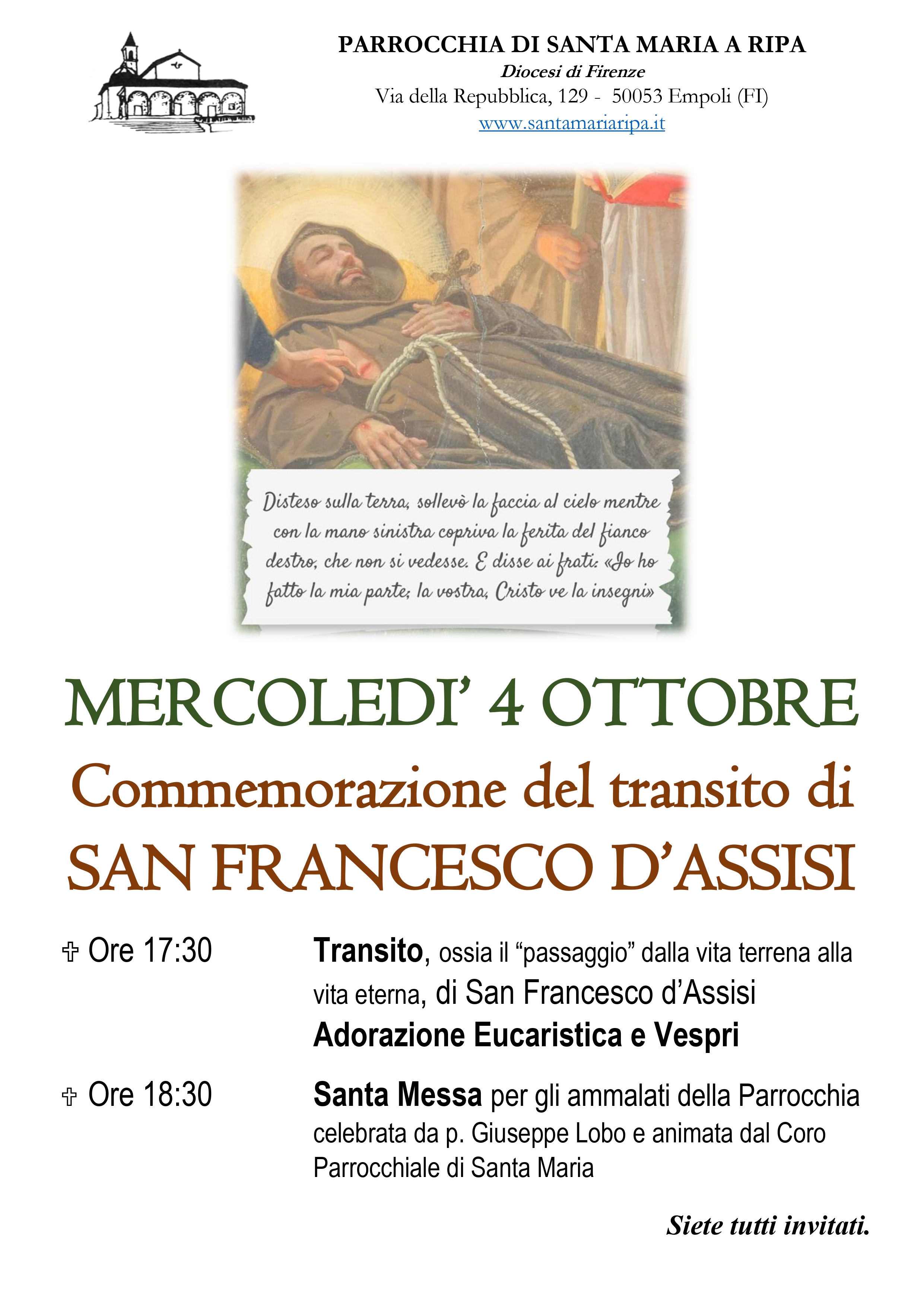 4 OTTOBRE Solennità San Francesco D’Assisi