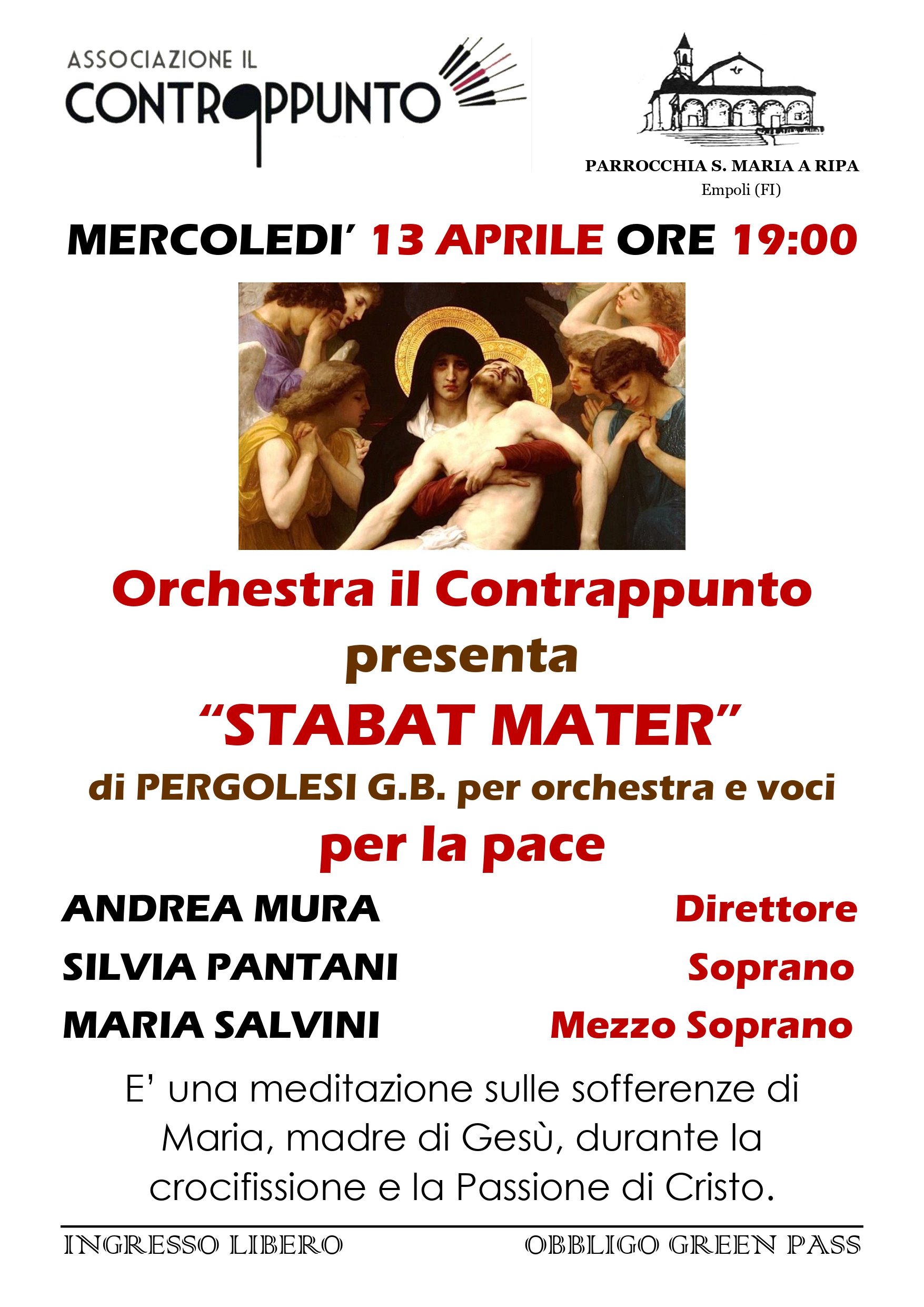 Mercoledì 13 Aprile ore 19:00 Orchestra il Contrappunto presenta “STABAT MATER” Pubblicato giorno 1 aprile 2022 - Attività