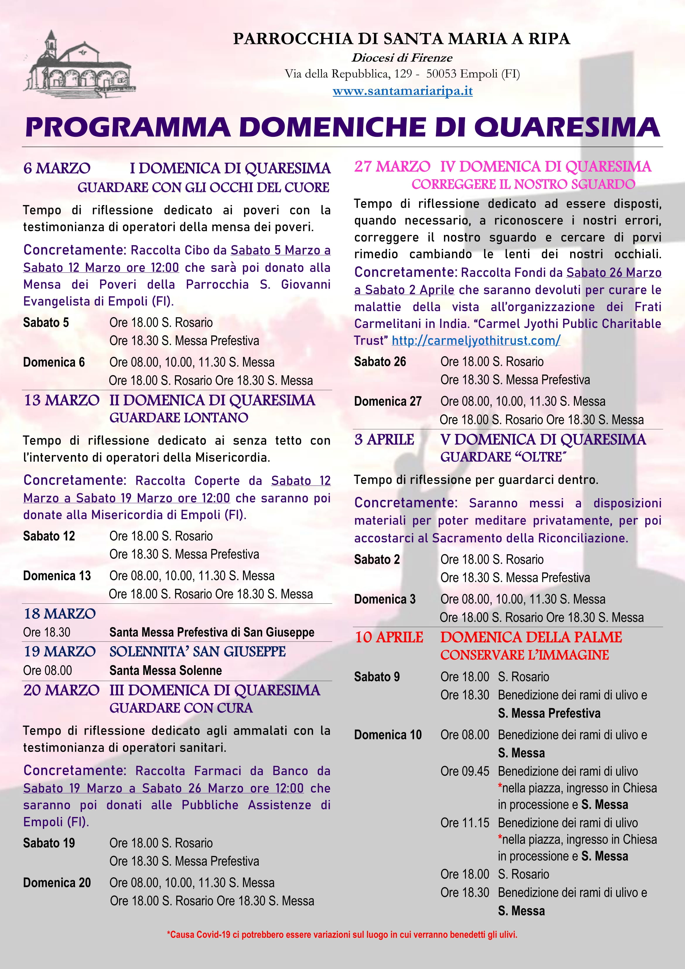 Programma Domeniche di Quaresima a partire da Domenica 6 Marzo Pubblicato giorno 25 febbraio 2022 - Attività