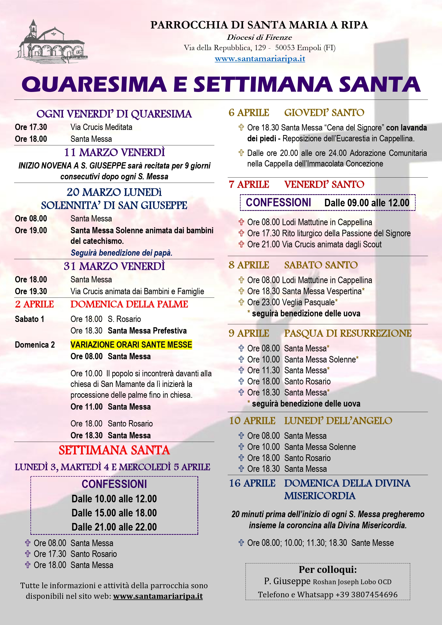Programma Tempo di Quaresima e Settimana Santa 2023